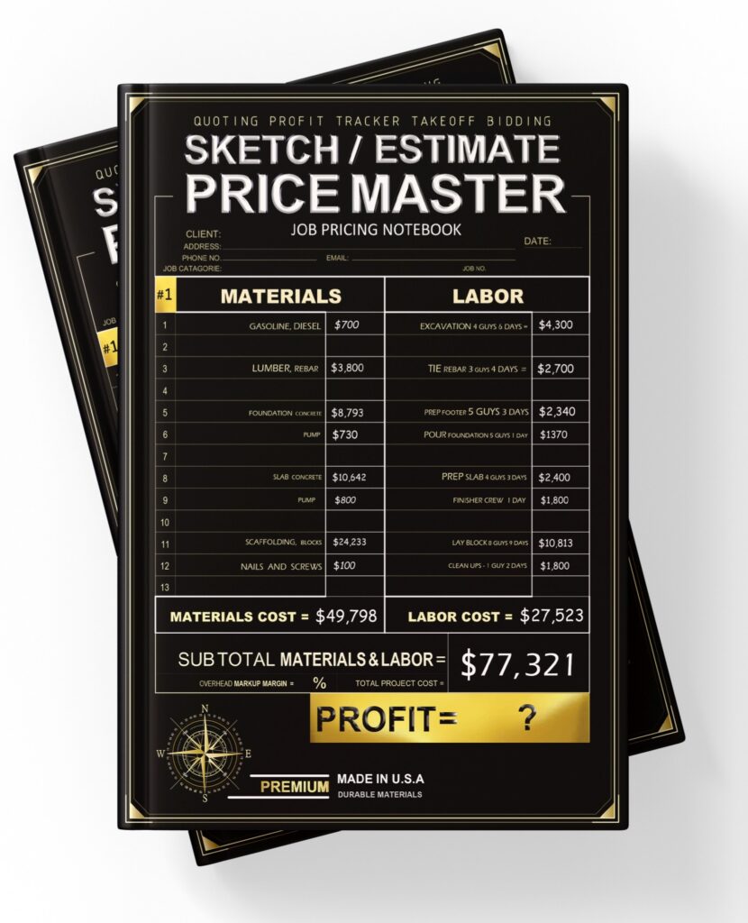 INVEST in your new PREMIUM CASH FLOW GENERATOR NOTEBOOK by creating FAST CLEAN SHARP Estimates, Material & Labor lists, Sketches, Quick Quotes, Takeoffs, Scopes of work and by tracking Leads and PROFITS – ALL in one place creating HISTORICAL job cost DATA